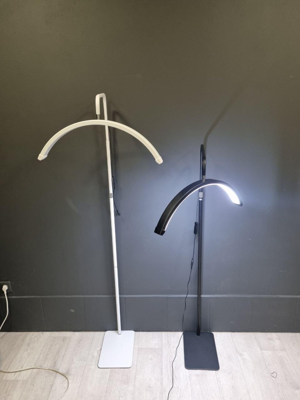 Профессиональная светодиодная кольцевая лампа дуга луна , предназначена для работы мастеров бьюти сферы. Косметологическая энергосберегающая лампа создает мягкий рассеивающийся свет, благодаря чему создает комфортные условия как для мастера, так и для клиента (не слепит глаза) . Это незаменимый аксессуар мастеров для маникюра, для наращивания ресниц, косметологов, мастеров по перманентному макияжу, бровистов и т. д. Лампа на штативе поможет создать вам комфортные условия для работы, что приведет к более качественной и быстрой работе при меньшей усталости ваших глаз. Светодиоды расположены по всей дуге, благодаря чему не создается тень и вам прекрасно видна вся рабочая поверхность. В наличии в белом и черном цвете.